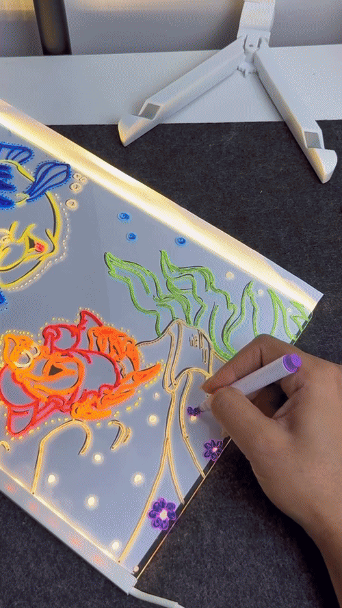 Transformez leurs dessins en oeuvres lumineuses qui les occupent pendant des heures sans écran. Utilisation illimitée : un geste et tout s'efface. L'incontournable pour stimuler la créativité des enfants.